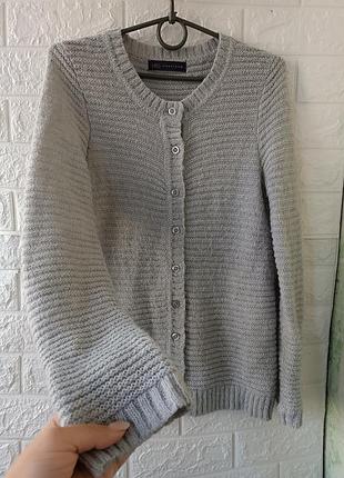 дуже гарна жіноча кофтинка сірого кольору на гудзиках, довжина 63, півобхват грудей 42 плюс тягнеться, плечі 32 ,довжина рукава 57.