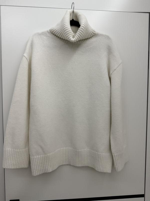 Білий базовий , теплий светр Акрил 30%, вовна 6%, поліестер 64%, Якістна річ, підійде під любий низ , Довжина 65, Пог 56, пот 55, пос 55, Плечі спущені 55, рукав 51, від горла 74, пройма напів обхват 29, біцепс 23