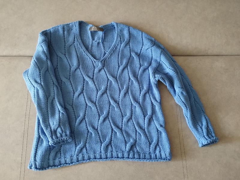 вязаный свитер с объемными косами треугольный вырез размер М, подойдет и на Л хорошо тянется пог 61 см длина 60 см
