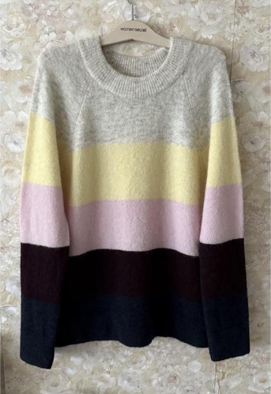 Красивый брендовый свитер с отличным составом нежная полоска указан ХS стиль оверсайз подойдет до ХЛ