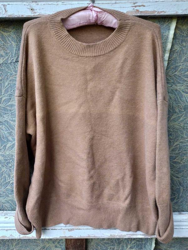 ярлыки отсутствуют шерсть ( очень высокого качества с примесями. Мягкий.). цвет кофе с молоком. Подкат на рукаве, подшит. ПОГ 62 см. рукав 66 см. ( от горловин, плечо приспущено), длина 66 см.