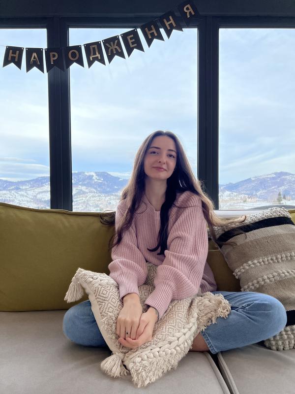 Светр з щільною вʼязкою, має ніжний рожевий колір, обʼємні рукава. Прався 2 рази, тканина не скочується. Підходить на розмір xs-s.