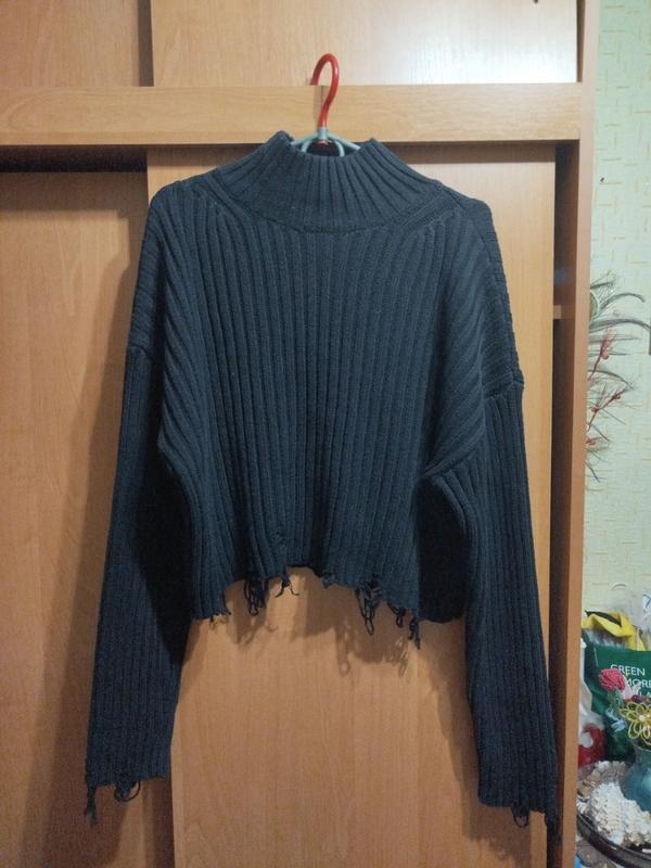 Теплая, укороченная вязаная, модняя, под шею, оверсайз кофточка.