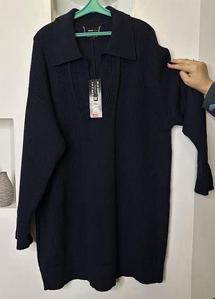 Состояние новая с биркой Темно синего цвета Плотная Теплая Мягкая Отлично тянется 52% вискоза 29% полиэстер 19% полиамид Низ рукава и кофты на широком манжете V- образный вырез По бирке указан размер L, но подойдет и на другие размеры Ориентируйтесь по замерам Замеры Плечи спущены Рукав от горловины 78 Пог 60/80 Длина 92