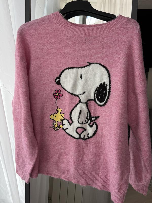 Светр вільного крою, в ідеальному стані, з героєм Снуппі Penuts, в розмірі М від Primark. Склад: 77% поліестр, 21% акрил, 2% еластан. Приємний, ніжний колір. Заміри: По спинці: 62-63 см Пів обхват груди: 58-59 см Пів обхват талії: 54 см Ширина низу: 54 см Довжина рукава від шва: 53 см, рукавчик спущеного крою.