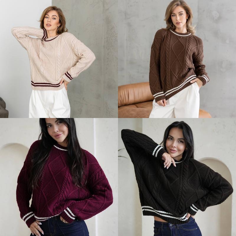 Зустрічайте нашу тепленьку вовняну новинку…Наш затишний оʼбємний светр з контрастною полоскою і незвичайним візерунком ▪️size: 42-46 ▪️colors: Карамельний - молочний Світло-бежевий - бордовий Бордовий - молочний Коричневий - молочний ▪️textile: 50% акрил, 50% вовна ▪️art: Willow