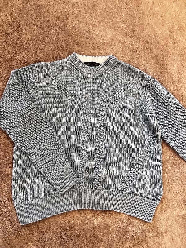 Светр M&S вʼязаний блакитний колір, склад бавовна 📍Розмір- M 📍Довжина- 53 📍Пог- 55 📍Плечі -42 📍Рукав -57