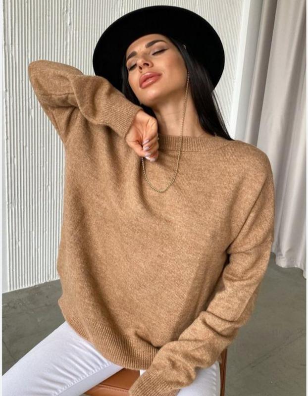 Оверсайзный свитер в красивом цвете в составе есть мохер. Из тонкой вязки из мягкой мохерной смеси со спущенными плечами, длинными рукавами и ребристой окантовкой вокруг горловины, манжет и низа. Чуть длиннее сзади.