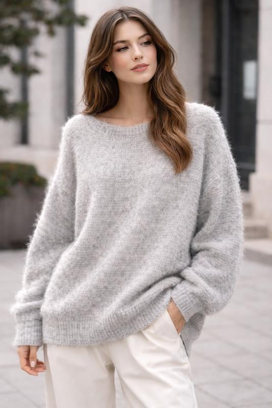 Махеровый свитер Los Angeles Atelier ✨ Цвет — бело-серый (светло-серый), универсальный и стильный. Средней длины, мягкий, пушистый и невероятно тёплый. ✔ Благородный фактурный мохер ✔ Уютный и комфортный в носке ✔ Отличное состояние — выглядит как новый Идеально подойдёт для холодного сезона: лёгкий по весу, но очень тёплый и эффектный.