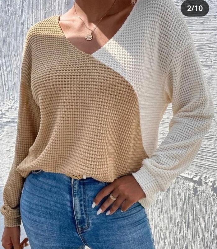 двухцветный свитер,сзади на завязке ПОГ 46 см рукав 50 см плечи 43 см длина 58 см