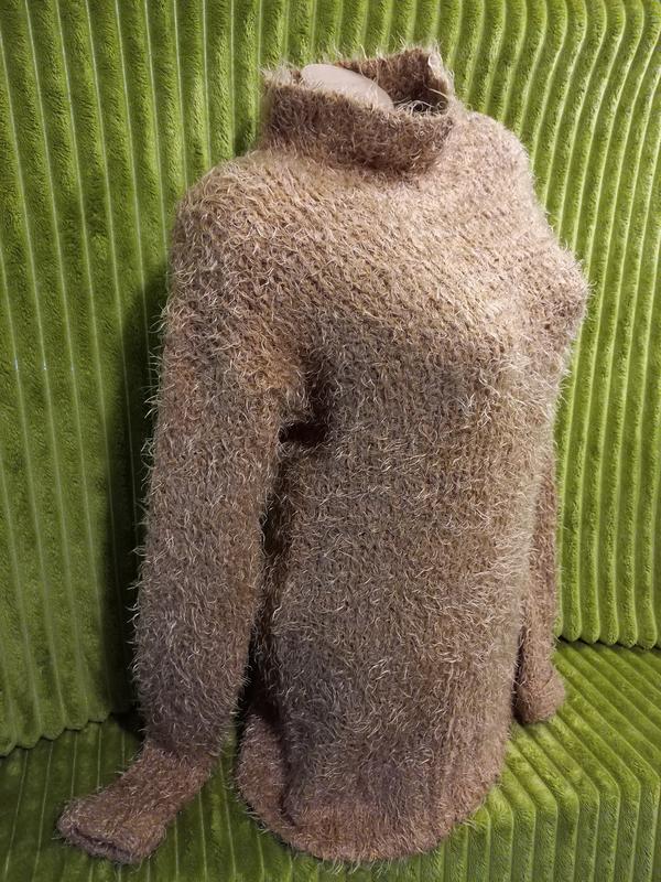 в отличном б.у состоянии чистий цілий после стирки. можно сразу одевать.нить травка пушистая с акрилом.крупная плотная вязка. размер смотрите по мерках. написано 8-10.можно носить в обтяжку или свободно оверсайз тоже красиво👍 длина-75см.длина по боку-55см.длина рукава-от горловины-80см.под рукой по шву-55см.полуобхват по шву пришивания рукава-20-26см.по низу рукава-до 12см.полуобхват по горловине низу-28-35см.пог-48-тянется вязка на 20см.но смотрите по ширине низа рукава.полурбхват по низу-48-68см или вольно 👍