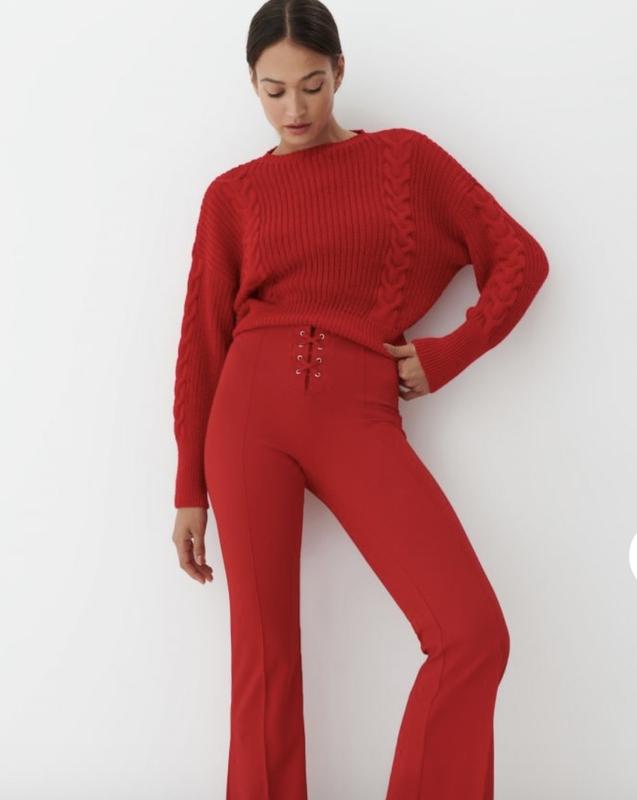 Яскравий червоний светр від бренду Mohito. 100 % акрил, тепленький і мʼякий . Розмір вказано XS, підійде також і на S-M. Крупна вʼязка , спереду гарні косички. Стан ідеальний Маю ще багато светрів дивіться всі мої оголошення