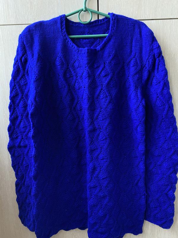 Жіночий светр з візерунком, ручної роботи з італіських вовняних ниток. Колір «кобальт»