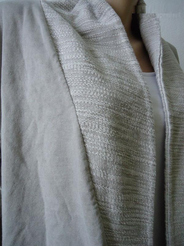 Стан відмінний, вільного крою , воріт і низ -окантовка - текстурна тканина, щільний трикотаж, по боках кишені. На високий зріст, М - XXL.Сіра імла.