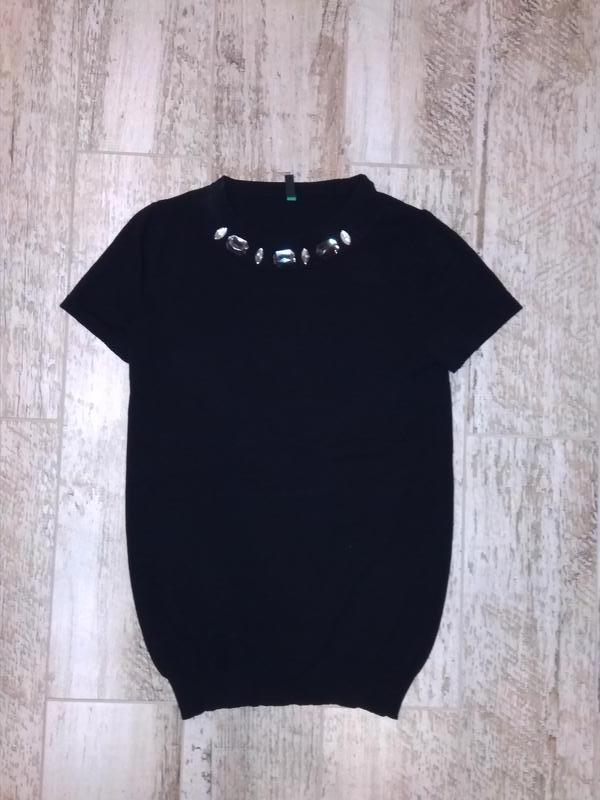 Стильна кофта від Benetton! Область шиї прикрашена камінцями (показала на фото) виглядає стильно та яскраво. Підійде на струнку xs ,s,м, добре тягнеться