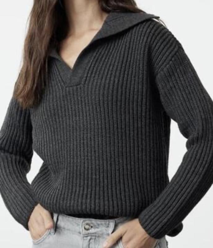 Вовняний светр поло Repeat, колір темно сірий. Розмір S-M. Склад мерино вовна. Є невеличкий дефект ( зашита дірочка) при носінні не видно, на останньому фото