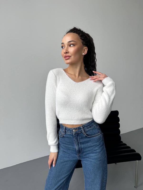 🔳НОВА КОЛЕКЦІЯ 🔳 7931 🌲 Стильний мʼякий ангоровий укорочений светр Матеріал - ангора травка ( тягнеться) 2 забарвлень: Чорний Білий Розмір універсальний 42/46 Ог до 100 см Довжина 40 і тягнеться Ціна 600 гр