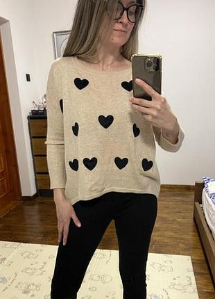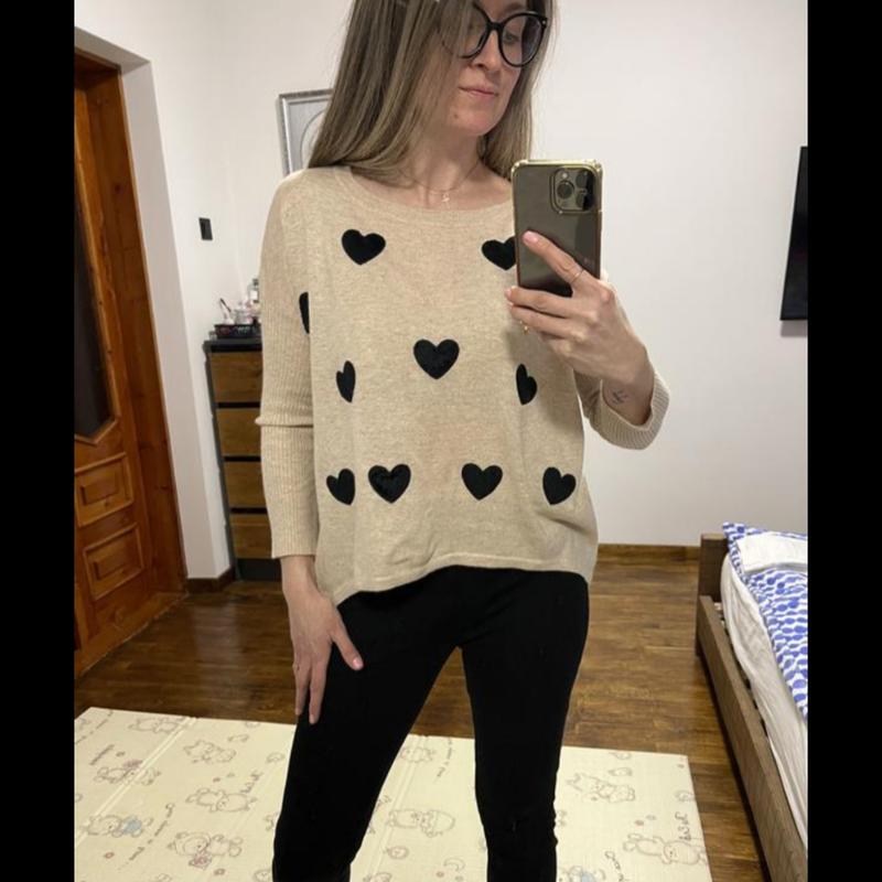 🩷 Женский свитер в сердечки от AX Paris Размер - M Длина - 54см (64см ззади) Полуобхват груди - 62см Длина рукава - 63см 🤍 оплата одразу на карту 🩶 отправка только новой почтой