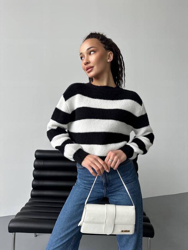 🔳НОВА КОЛЕКЦІЯ 🔳 7932 🌲 Стильний кашеміровий светр у смужку Розмір оверсайз 42/48 Довжина 50/53 см Ширина 55/57 Рукав від горла 65/67 см 2 кольори: чорний , беж Ціна 700 грн
