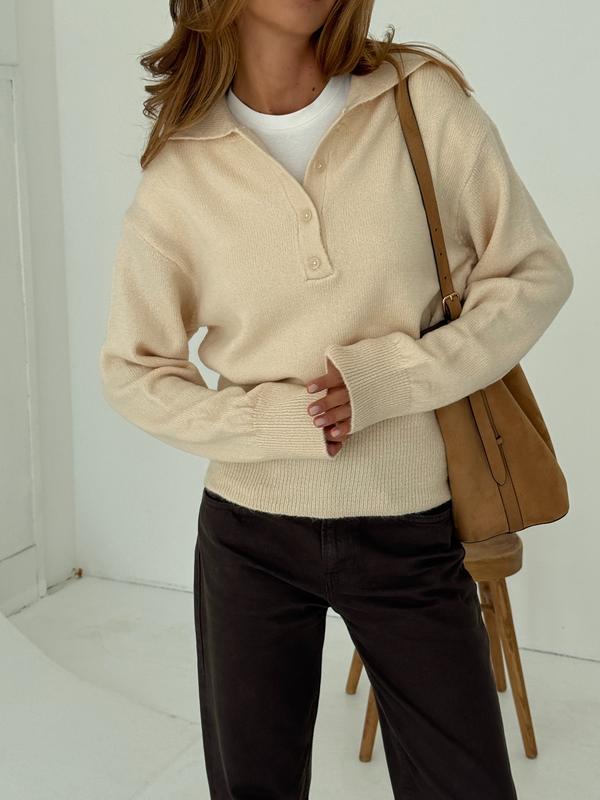 Светр з коміром Розмір:one size Колір:молоко|капучино Склад:50% бавовна|10%шерсть|40%поліестр