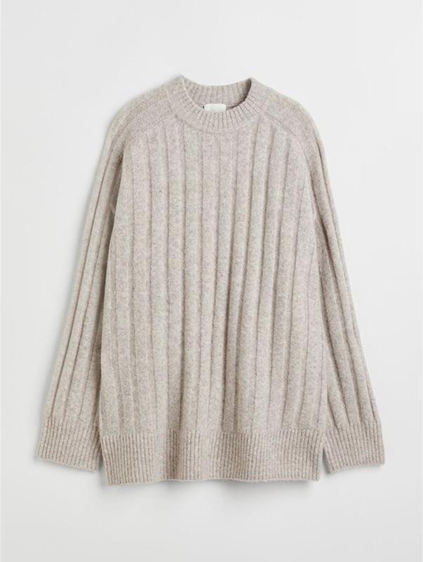 Бежевий теплий прямий оверсайз светр в рубчик h&m