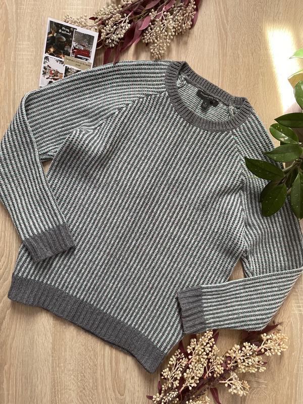 Светр щільної в’язки, неймовірно теплий, у складі тканини натуральна шерсть Якісний бренд Banana Republic Без дефектів Колір бірюзово-сірий, нитки саме таких кольорів Заміри: Пог 47 Пот 45 Довжина 60 Рукав від шиї 68, від пахви 46