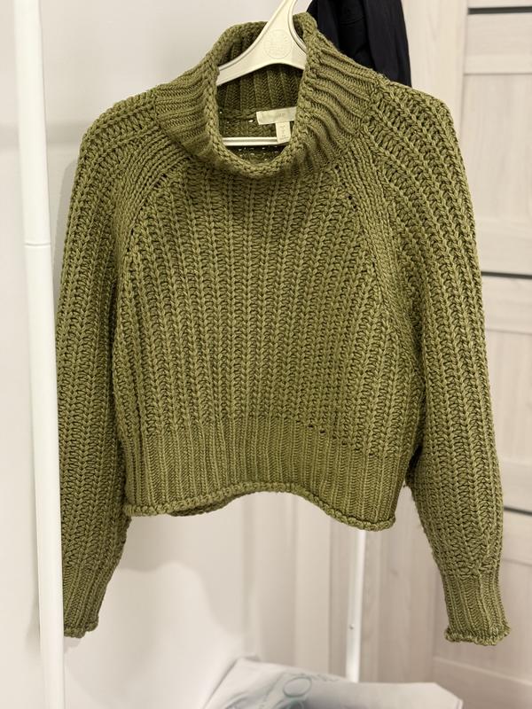 Светр від h&m, зеленого кольору, ручної в'язки. Звертайтеся для отримання детальнішої інформації. Стан дуже хороший Теплий Трендовий колір Довжина 45 см