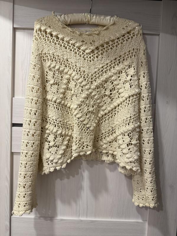 Светр вʼязаний zara . Стан ідеальний. Бохо стиль. Плечі 36 см. Довжина від плеча 46см . Рукав від шиї 64 см