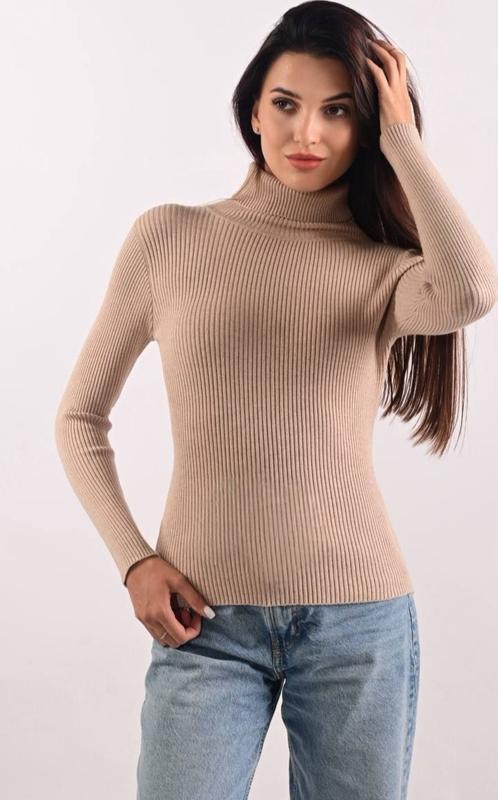 Бежевый базовый гольф в рубчик. размер 42-46. Ткань красиво тянется.