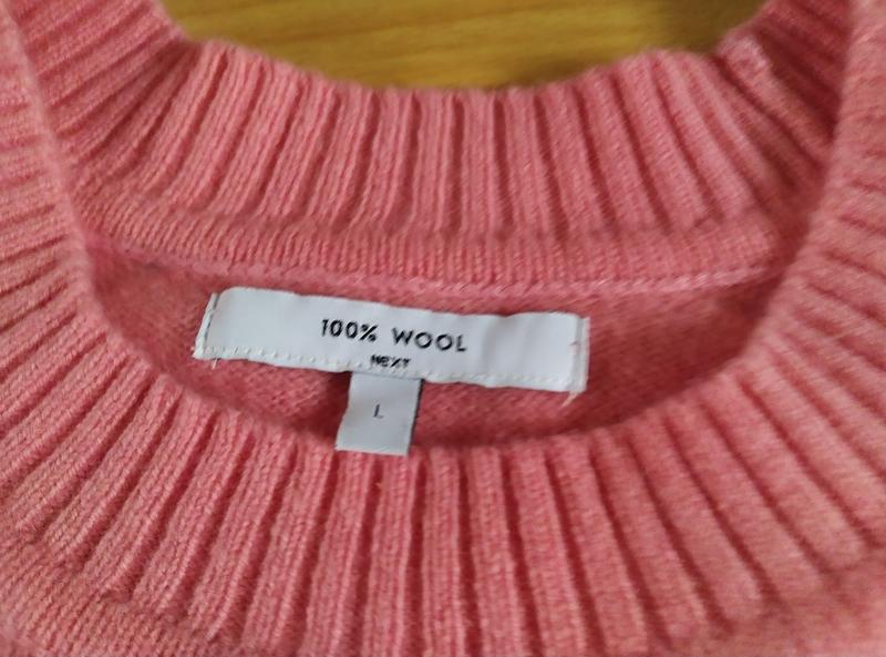 Свитер женский розового цвета, полуобъем груди 60, длина изделия 66, состав- 100% шерсть, на наборе указан размер L, но для этого размера она больше, подойдет на 50 размер
