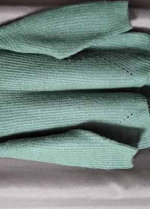 Теплий светр гарного оливкового кольору в ідеальному стані . Має трохи асиметричну довжину . Всі заміри в вільному стані . По бірці XL але орінтуйтесь по замірам . Заміри : об/груди 134 , об/талія 132 , об/стегна 130 , довжина попереду 66 , по спинці 72 , довжина рукав від горловини 73. Тквнина :86% акрил , 14% поліестер .