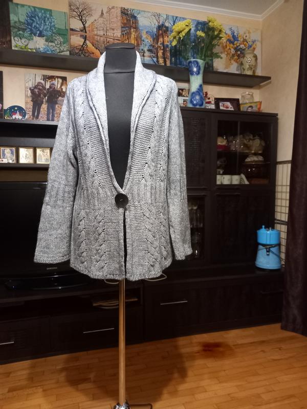 женская теплая кофтина серого цвета, застежка кнопка. размер 52-54. пог 54, плечи 42, длина 62, рукав 60.