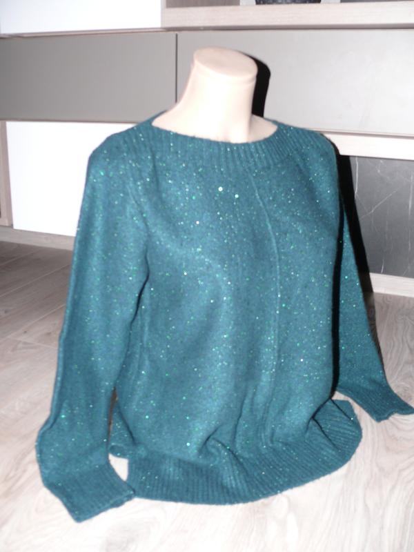очень красивый бутилочный цвет+паетки шикарно смотрится, качество классное размер М ПОГ 51см, длина 64см