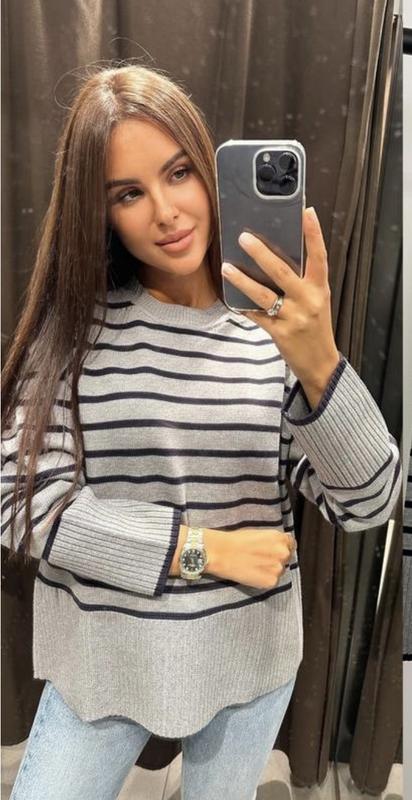 Стильний светр в смужку в стилі Zara Стан новий, без паперової бірки Пряжа мʼягка і приємна до тіла, в складі віскоза+ поліестер+ нейлон. По боках внизу розрізи. Розмір М Пог 52 Довжина 62 Рукав від горловини 73.