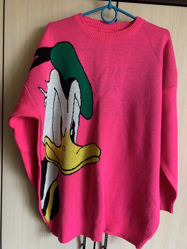Жіночій светр ярко рожевого кольору з малюнком,подовжений
