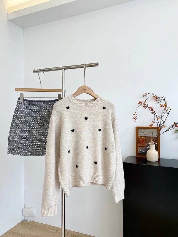 Затишний светрик у ніжних відтінках доповнен вишитими чорними серцями❤️ Мод 2575 Колір: білий, бежевий Розмір: універсальний с/м Тканина: машина в'язка