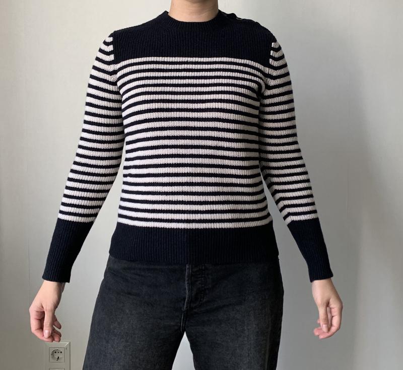 Вовняний светр у смужку Розмір М У складі 50% вовна, 38% катон, 12% поліамід Довжина 55 см, довжина рукава 61 см, напівобхват грудей 46 см Стан ідеал Вдягнуто на розмір Л, зріст 167