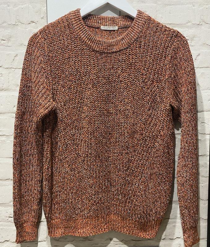 Натуральный, не синтетика, приятный телу. Цвет кирпичный Все замеры по фото. Длина рукава замерянная вместе с линией плеча. Оделала на свой рост 160см и размер.М, комфортно