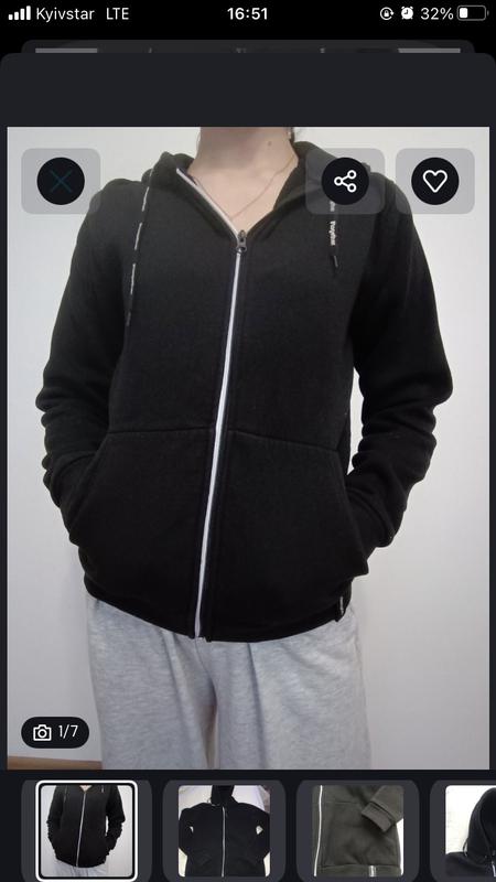 Чорна тепла кофта з капішоном. На блискавці. Два функційні кармани. Розмір S. Заміри: довжина по спинці 63 см, під пахвами - 49 см, рукав - 60 см.