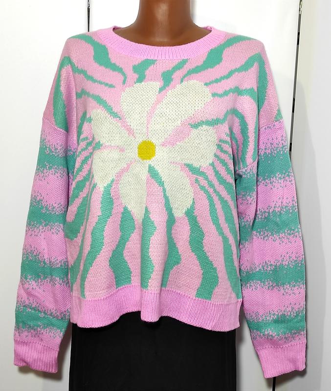 Замечательный яркий свитерик 💥Стан идеальный, состав акрил, размер указан L,ориентируйтесь на замеры Линия плеча занижена Пог 58 Дл рукава от горловины 76 Бицепс 22 Ширина по низу 60+- Дл изделия 59