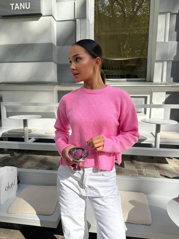 Женский укороченный свитер с разрезом по бокам свитер