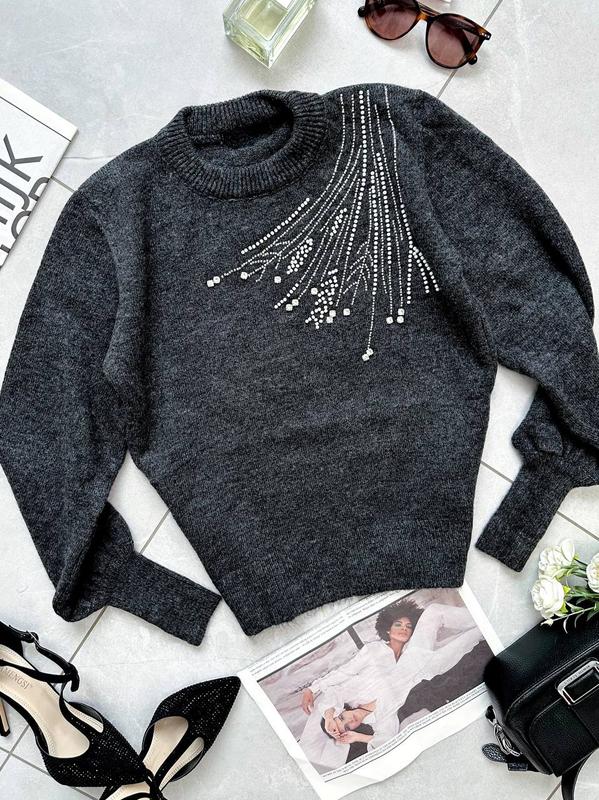 Светр Модель 1069 Размер универсальный 42/52 амур) Машинная вязка Производитель Турция Цвет: молочный, антрацит ОГ-45 см Длина - 56 см Длина рукава от ворота- 73 см Погрешность замеров на трикотажных вещах +-2-3см