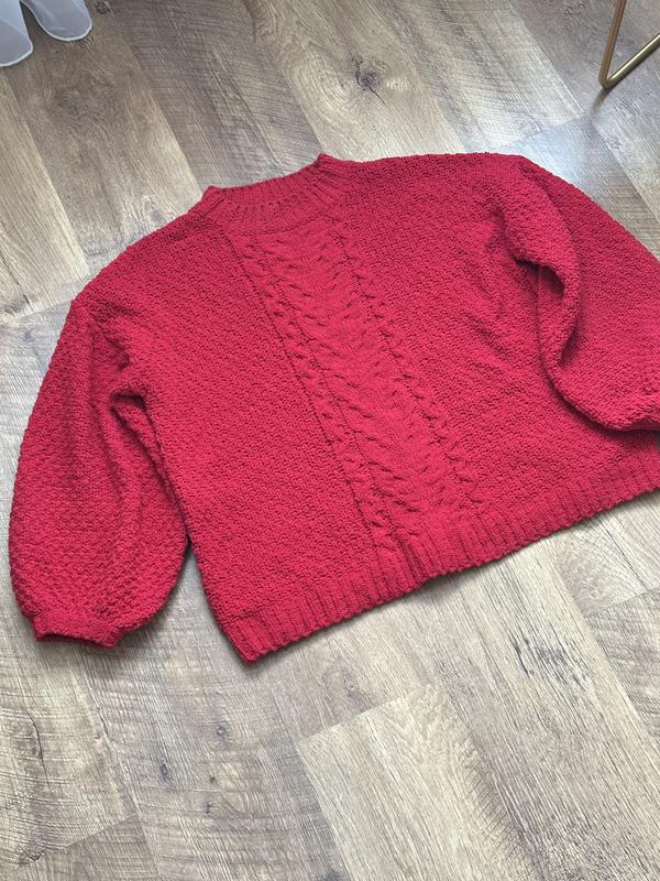 Червоний светр Stradivarius, розмір М, фасон оверсайз, обʼємний рукав, теплий
