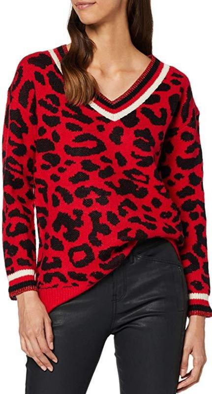 Красный свитер Derhy с леопардовым принтом и V-образным вырезом. длина 67 Ширина полуоб 54 длина рукава от горловины 65