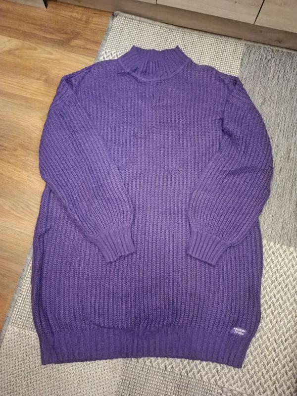 вязаное платье батал размером ХЛ, крупная вязка насыщено фиолетового цвета, очень теплое. размеры нап.ог 65см, длина 90см, рукав от горловины 82см, от плеча (он опущен) 56см, по плечам 73см