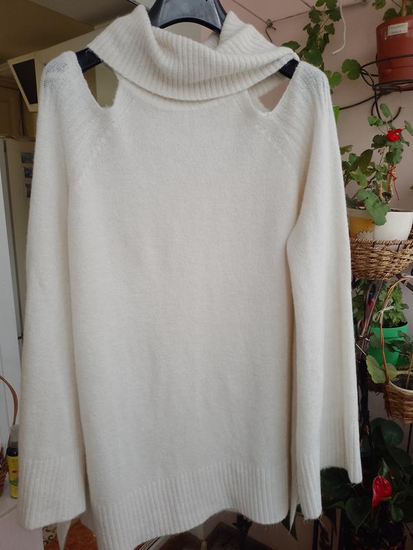 Нарядный белый свитер оверсайз из акрила. Очень эластичная вязка, поэтому пойдёт на все батальные размеры.Указан 16р Длина 73 Погр-60.....88 Рукав на высокий рост, в зависимостм как низко спускать с плечей.