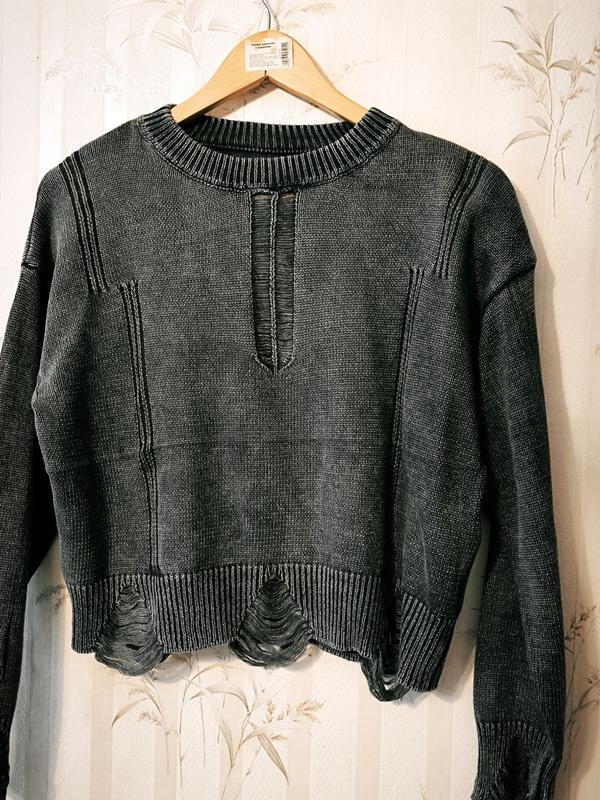 Ультра модний светер рванка. Маст хев сезону. С акцентом на груди и по низу изделия. Серого цвета, подойдет под джинсы багги, кожаные брюки, шорты. единый размер. наХС-Л, Все зависит, как вам нравится более свободный,чи по телу. Заміри. В спокойном состоянии. Полуобхват грудь 50см (тянется 46 до 55см) Длина по спинке 50см Рукав от плеча 63см Низ Ткань 100% полиэстр, шерсть очень плотный рубчик.