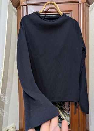 Женский шерстяной свитерик красивого темно-синего цвета. 100% вовна. Приятный к телу. В целом, идеальное состояние, но есть два маленьких зашитых места (вывно на трех последних фото): первое-на горловине, но за счет того, что она закручена и цвет такой темный, то это вообще не видно, второе внизу кофточки так же незаметно, потому что цвет все прячет. Размер L ПОГ 62 Длина 61 Рукав от горловины 72