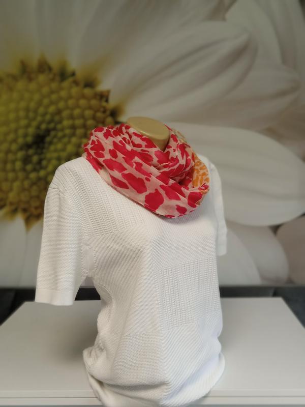 Классическая однотонная кофтонка с коротким рукавом белого цвета. Легкая и удобная. Приятная к телу. Фактурная машинная вязка. Нить средней толщины. Стрейч. Ложится по фигуре. Аккуратный вырез Красиво смотрится с шарфом в тон в комплекте (шарф может быть заменен, но в цвете). Есть размеры. 48р на пог-50-52 46р на пог-48-50