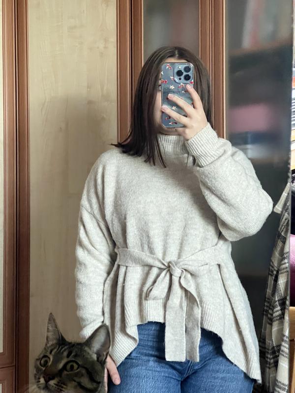 Светр бежевого кольору, з відкритою спиною. Можна носили в двох варіантах. Одягнуто на S. Классно під джинси є трохи катишок